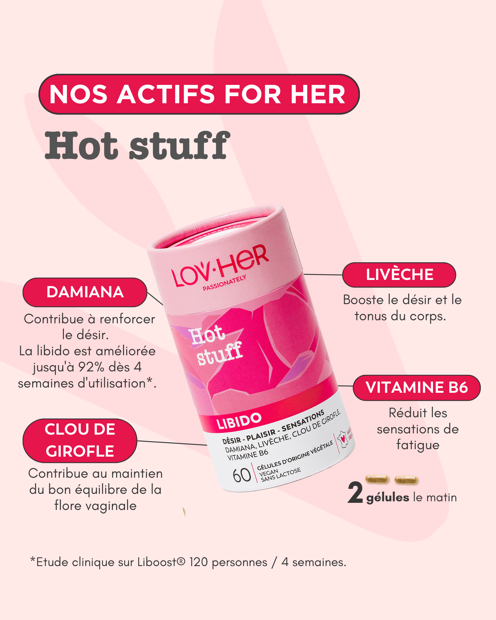 *Étude clinique sur Liboost®/Damiana menée auprès de 120 personnes sur 4 semaines.